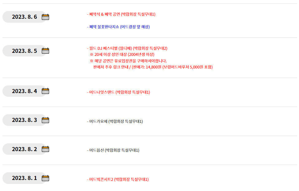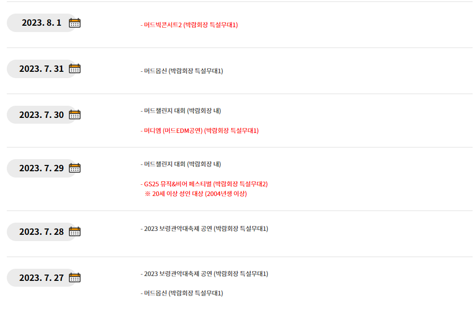 1. 보령 머드축제 일정안내