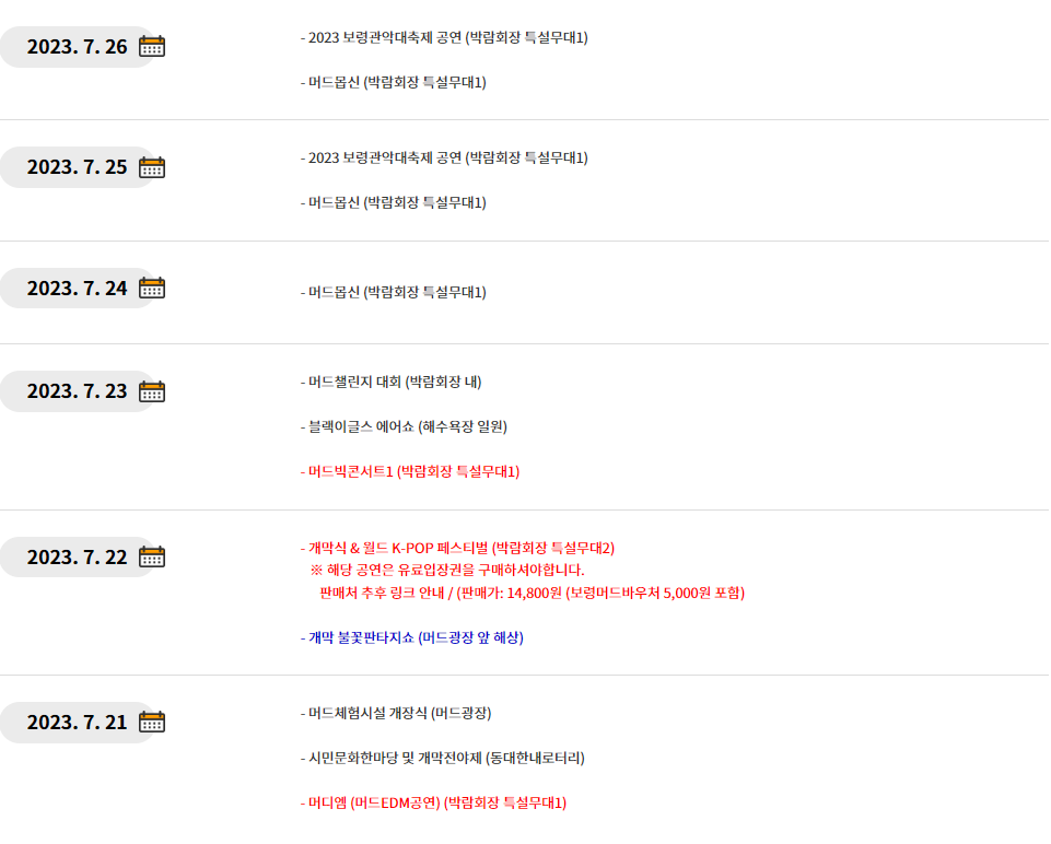 1. 보령 머드축제 일정안내