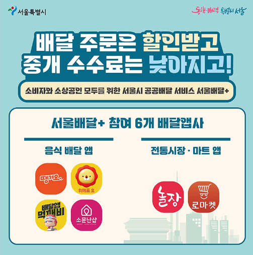 - 대상: 서울배달플러스 참여 배달앱(6개)에서 서울배달플러스 상품권으로 결제한 고객