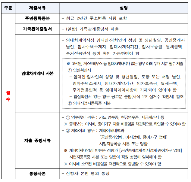 - 세대주 및 임대차계약서의 임차인은 신청자 본인이어야 하며, 임차건물 소재지에 주민등록이 등재되어 있어야 함