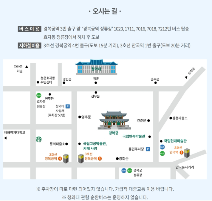 10. 야간행사에는 청와대 순환버스 운영되지 않음